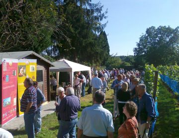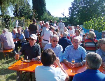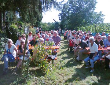 Das mittlerweile 10. Kesselstädter Wingertfest fand am 15. September 2019 bei einem zunächst unbeständigen, dann doch guten Spätsommerwetter statt. Es waren fast einhundert Patinnen und Paten gekommen, um bei Wein, Kaffee und Kuchen zu feiern. Unsere "strategischen Partner", der Hochstädter Winzerverein, hatte wieder dankenswerterweise das Keltern, den monatelangen Ausbau und zuletzt das Auf-die-Flasche-ziehen übernommen. www.ersterhochstaedterwinzerverein.de