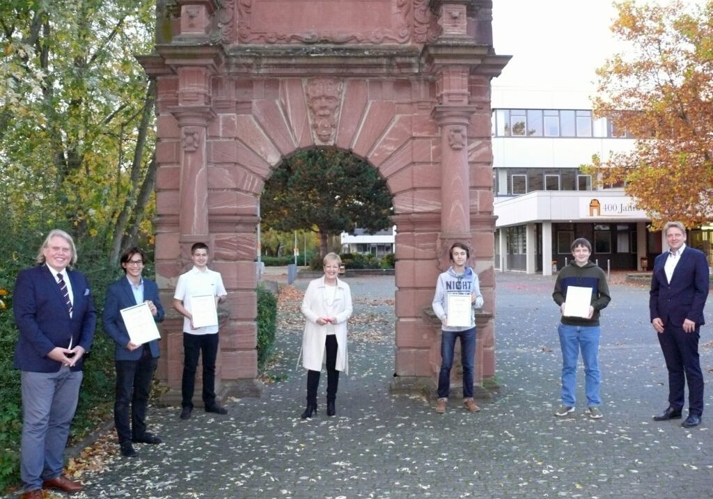 Preisträgerinnen und Preisträger der Hohen Landesschule mit Vorsitzendem Michael Sprenger